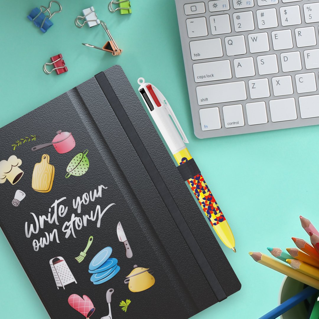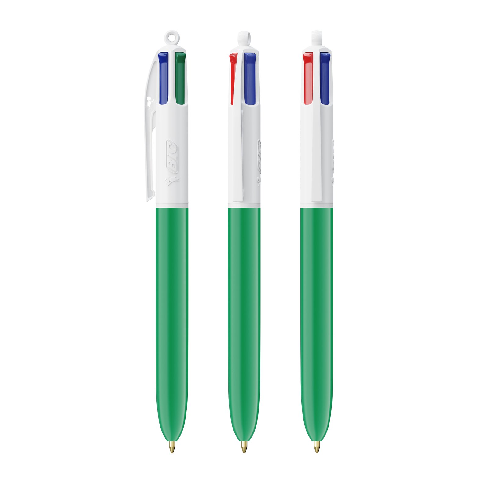 Sencilla, ingeniosa y fiable, la emblemática pluma BIC® 4 Colours® combina cuatro opciones de tinta en una: azul, negro, rojo y verde. Un clásico atemporal que nunca pasa de moda, ofrece una escritura suave y practicidad para el día a día. Personaliz