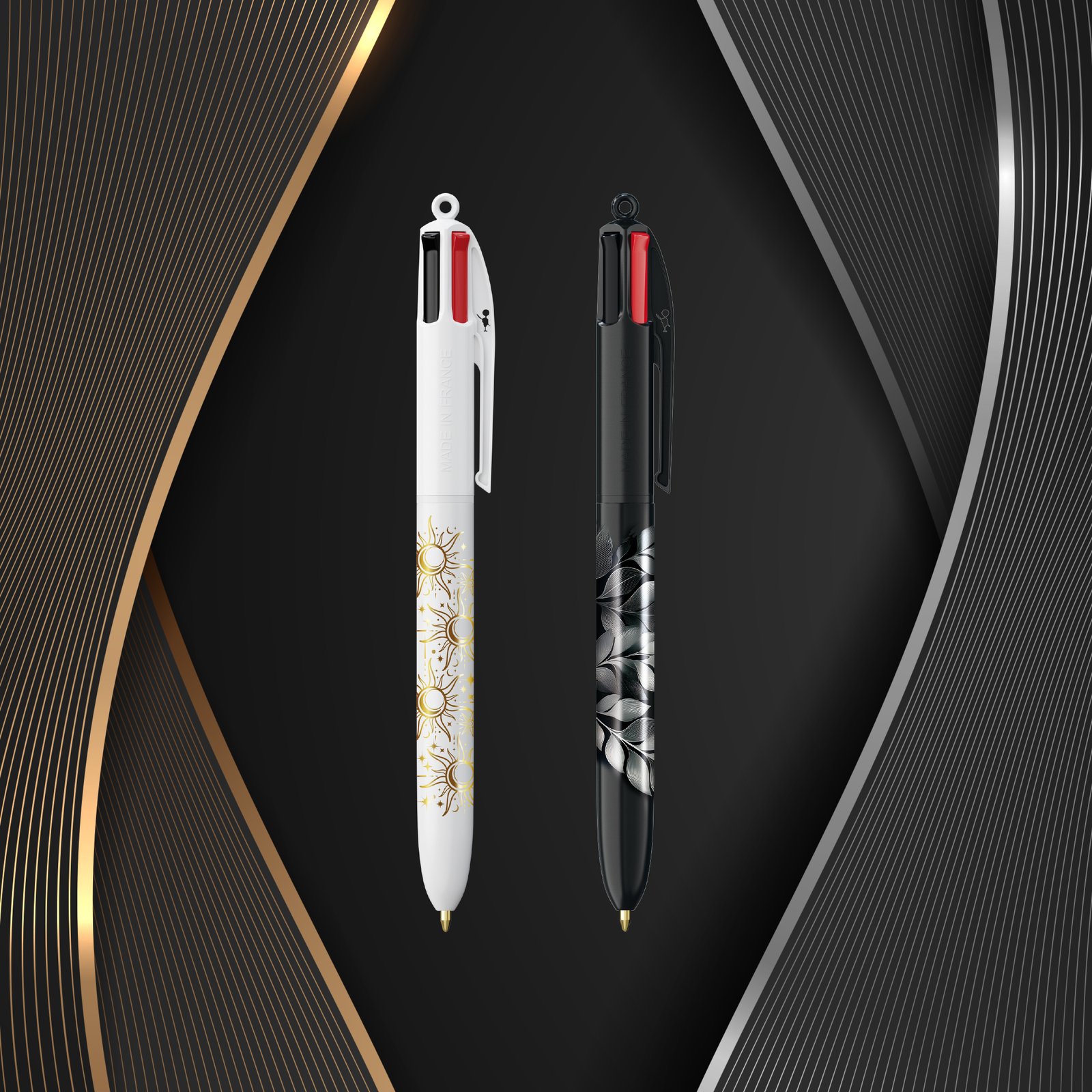 Sencilla, ingeniosa y fiable, la emblemática pluma BIC® 4 Colours® combina cuatro opciones de tinta en una: azul, negro, rojo y verde. Un clásico atemporal que nunca pasa de moda, ofrece una escritura suave y practicidad para el día a día. Personalizable con impresión digital a todo color britePix™, esta legendaria pluma promocional es imprescindible para las empresas que desean mostrar su marca con impacto. Ahora, el icónico bolígrafo BIC® 4 Colours® se renueva con elegantes acabados metálicos Metallic Foil en dorado y plateado. Combinando la practicidad de cuatro tintas en una sola con un diseño lujoso, es el bolígrafo promocional perfecto para eventos corporativos, regalos de fin de año y programas de fidelización de clientes. Duradero, elegante y fácilmente reconocible, este bolígrafo garantiza que su marca destaque con un toque premium. Además, ahora tiene un 13 % menos de plástico en la parte superior, lo que lo convierte en una opción más sostenible.