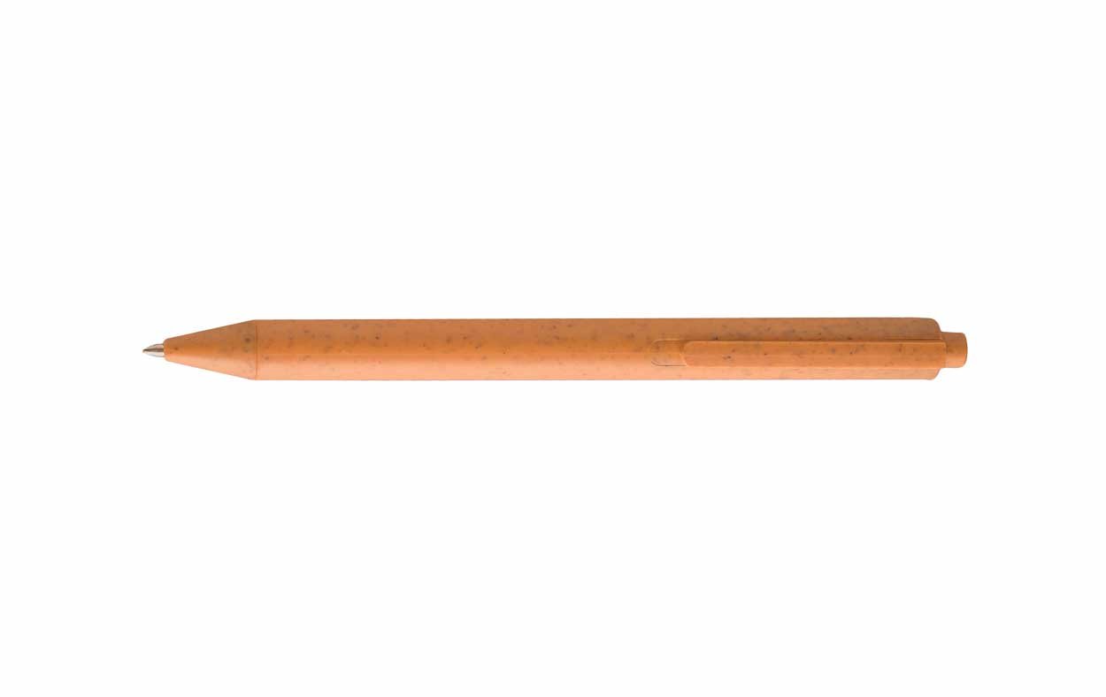 Bolígrafo retráctil ecológico fabricado en fibra de paja de trigo y PP. Detalles granulados en el color . Tinta negra, punta redonda, grosor 1.0MM