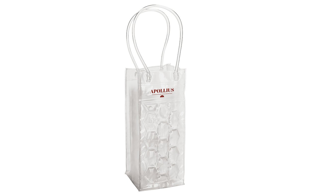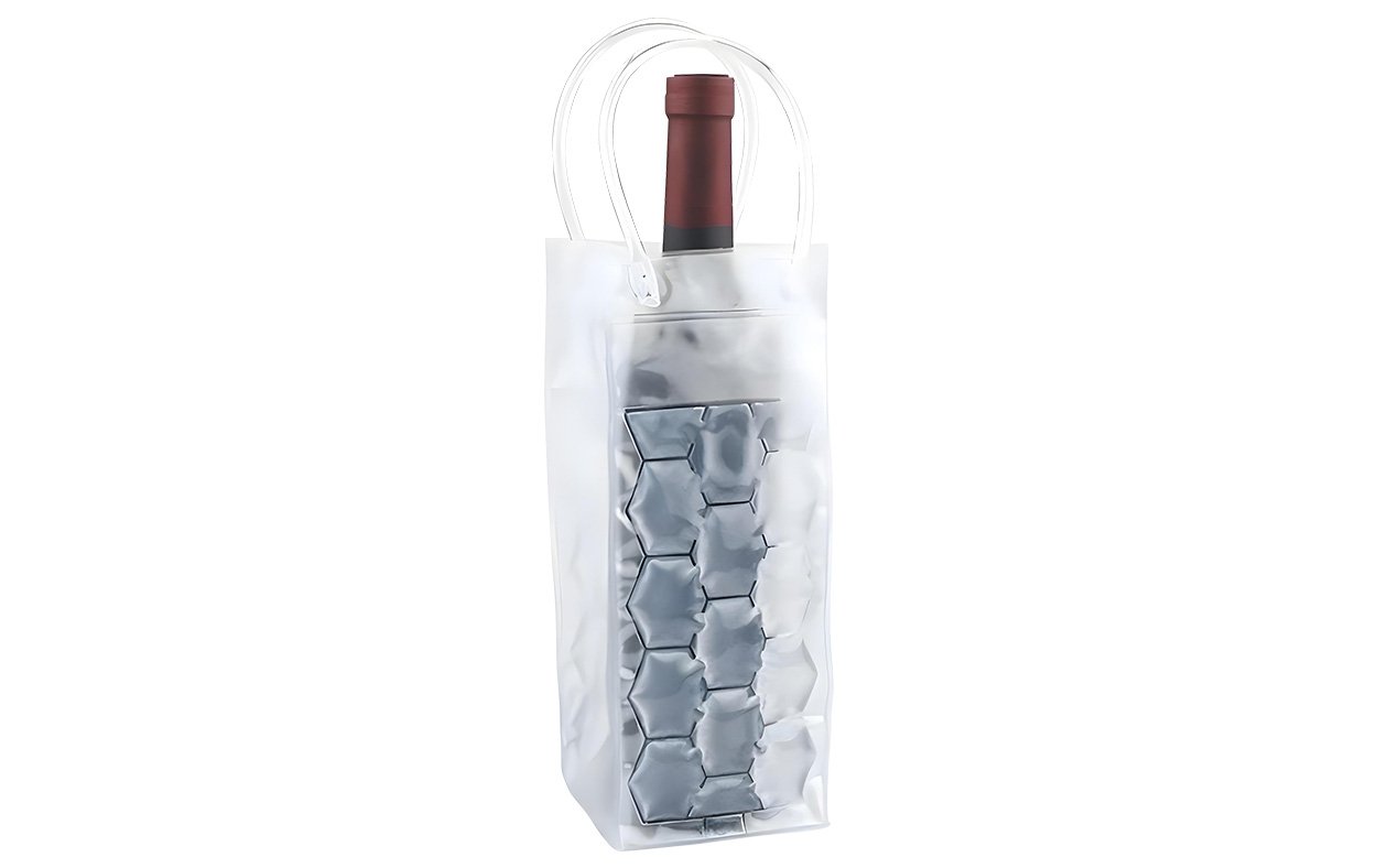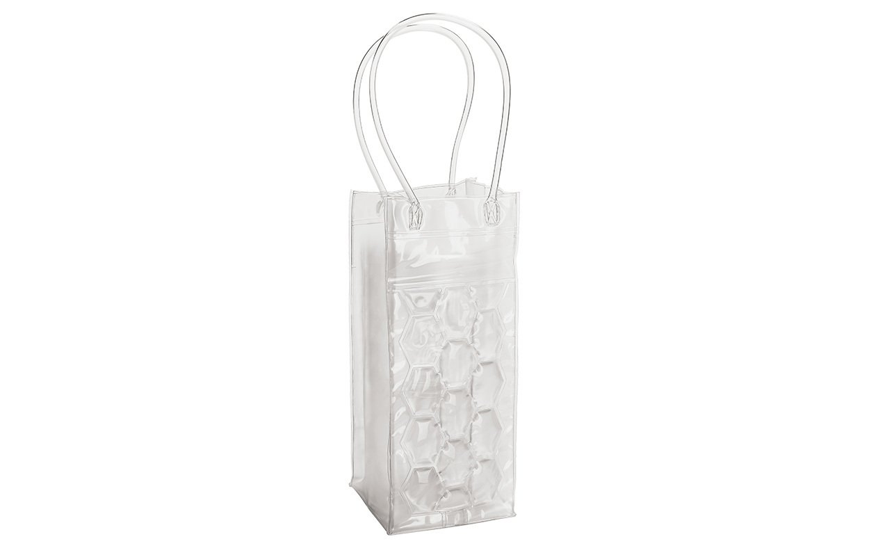 Elaborada en PVC transparente, es el accesorio perfecto para mantener tus bebidas frías. Con capacidad ideal para una botella de 750ml.