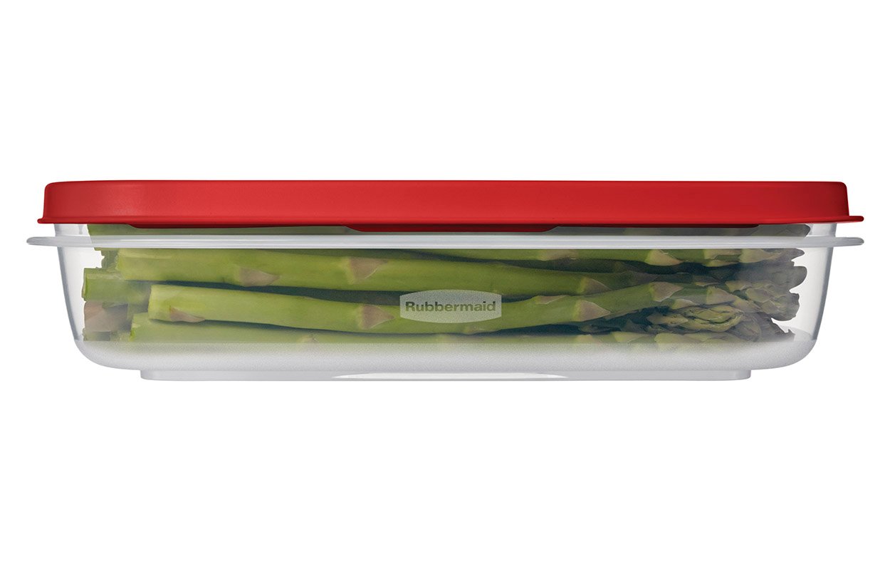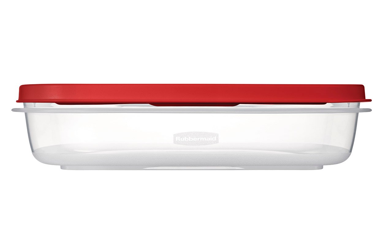 Easy Find Lids Rectangular 1.3L . Tapa Roja y Cuerpo Transparente – Contenedor especialmente desarrollado por Rubbermaid – Sistema Guarda Fácil evita extraviar las tapas – Las tapas se ajustan a las bases y a otras tapas para un fácil almacenamiento. – Base Super-Clarified permite ver fácilmente los contenidos – Paredes de contenedores gruesas y duraderas para uso diario – Apto para microondas, congelador y lavavajillas. – Capacidad: 1.3L – Bases y tapas libres de BPA, y aptas para microondas, lavavajillas y congelador.