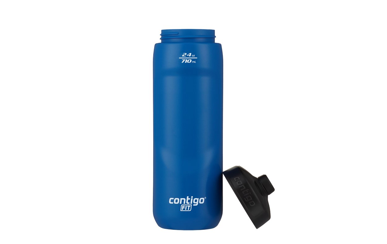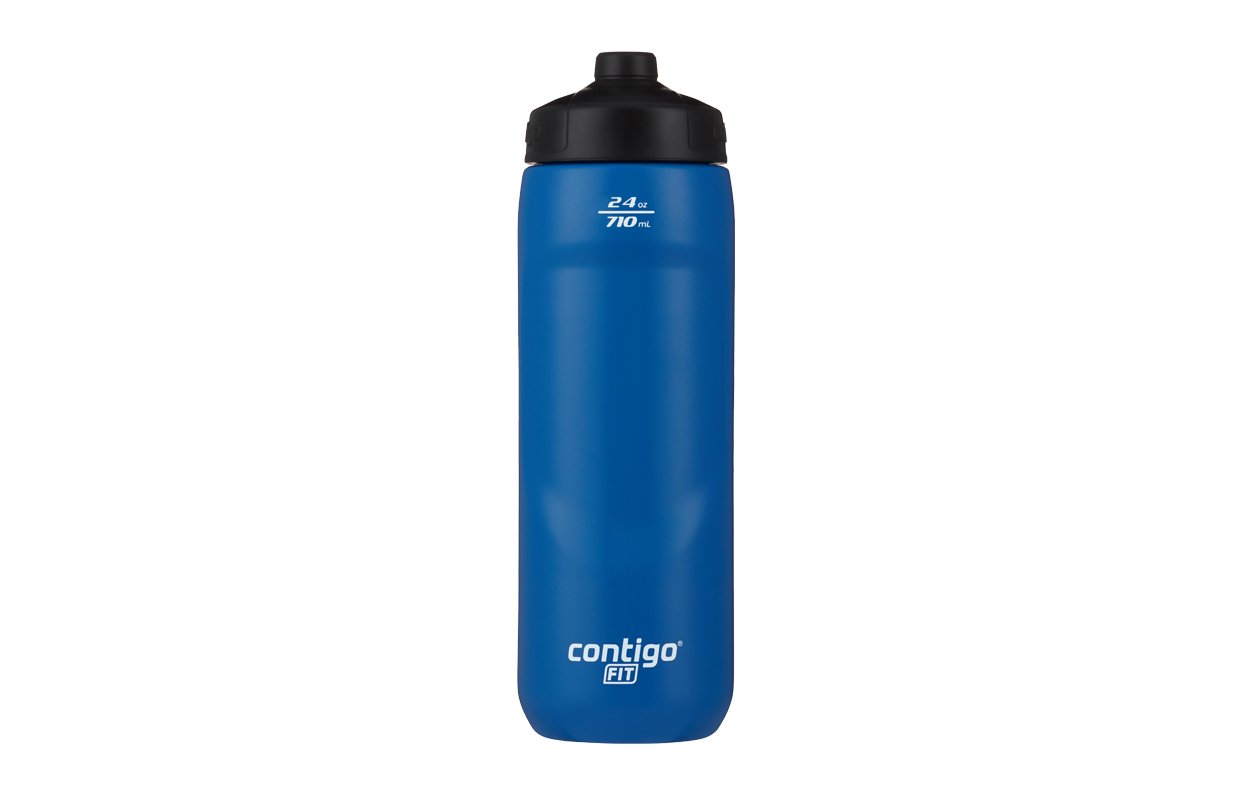 • Botella Contigo Fit Spill Proof sistema Squeeze, apriete la botella y sale automáticamente el líqudo • Tecnología de valvula unidireccional que previene derrames • Franja de visión clara para ver fácilmente el nivel del agua • Botella de fácil limpieza, para evitar manchas y olores • Libre de BPA • Capacidad de 710ml.