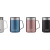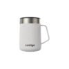 Mug térmico 414 ml con asa, tapa segura y base antideslizante.