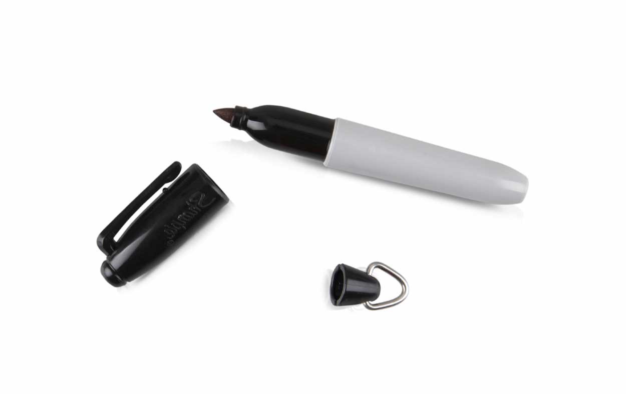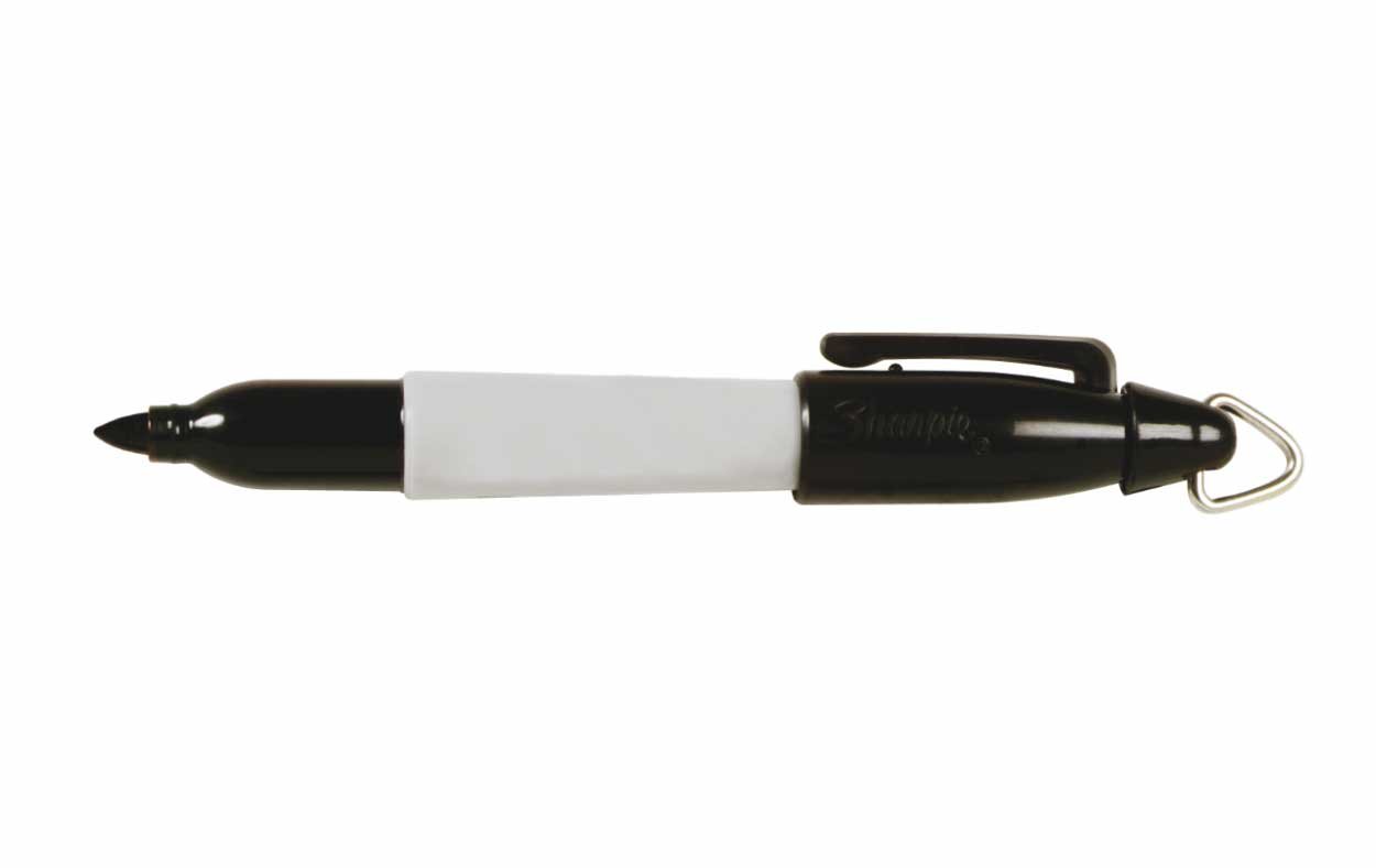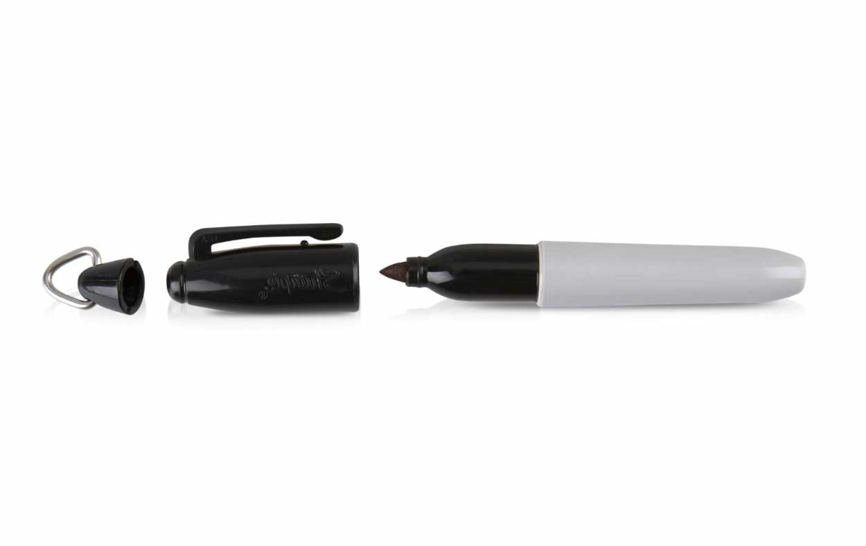 Marcador permanente de punta fina 0.7mm, color negro portatil con accesorio porta llavero removible, tamaño ideal para llevar a cualquier lado. El clip de la tapa te permite llevarlo en el llavero, mochila, bolso y cartuchera. Tinta permanente en papel, plástico, metal y la mayoría de las otras superficies, de secado rápido y resistente a la decoloración y al agua. cuerpo color gris tapa negra. (11778960) Fórmula no tóxica certificada por AP