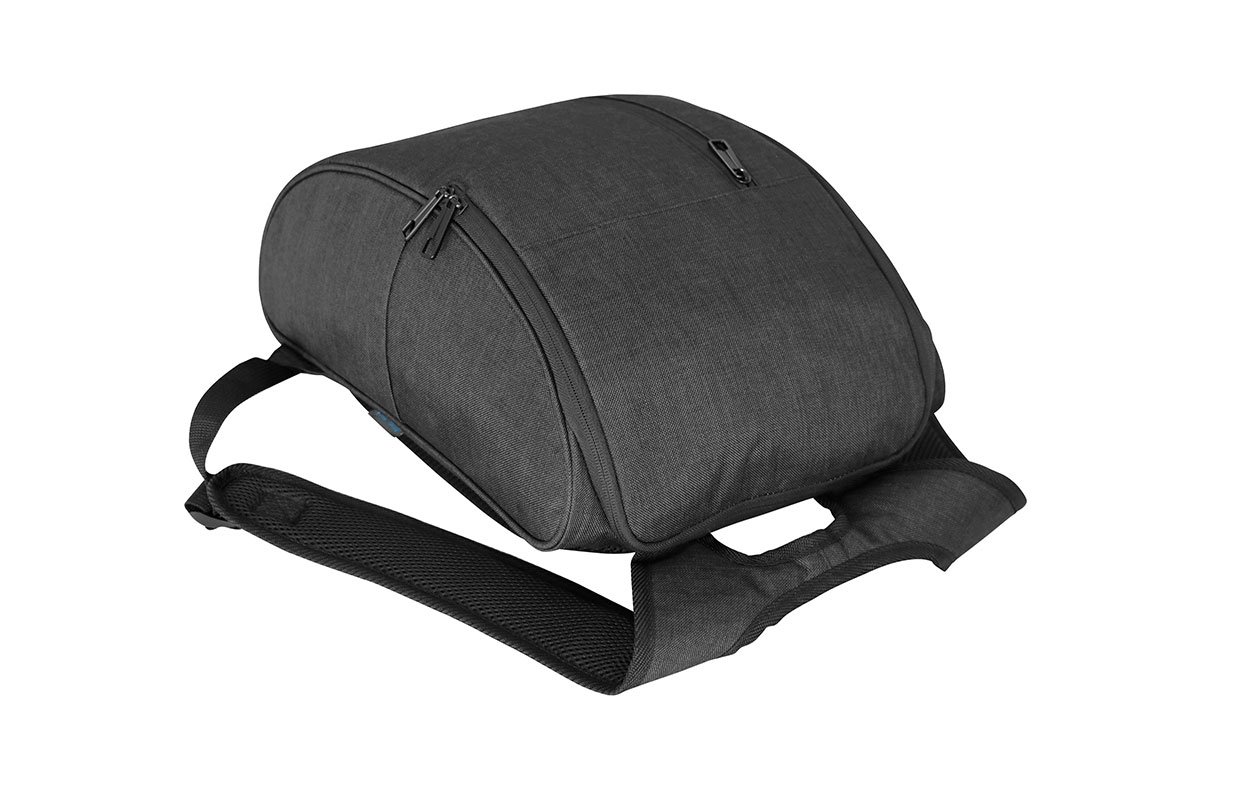Mochila portanotebook, con 2 divisiones acolchadas: para notebook de hasta 15,6″ y para tablet de hasta 9,7″. Respaldo y correas acolchadas. Capacidad: 14L.