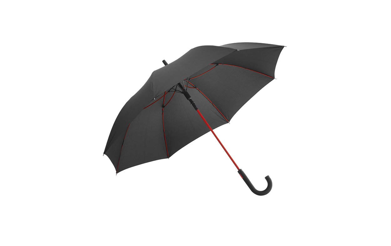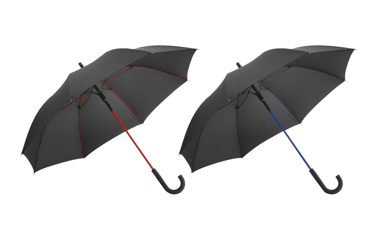 Paraguas de 8 gajos con estructura y varillas de fibra de vidrio de colores. Con mecanismo de apertura automática. Material: Poliéster.