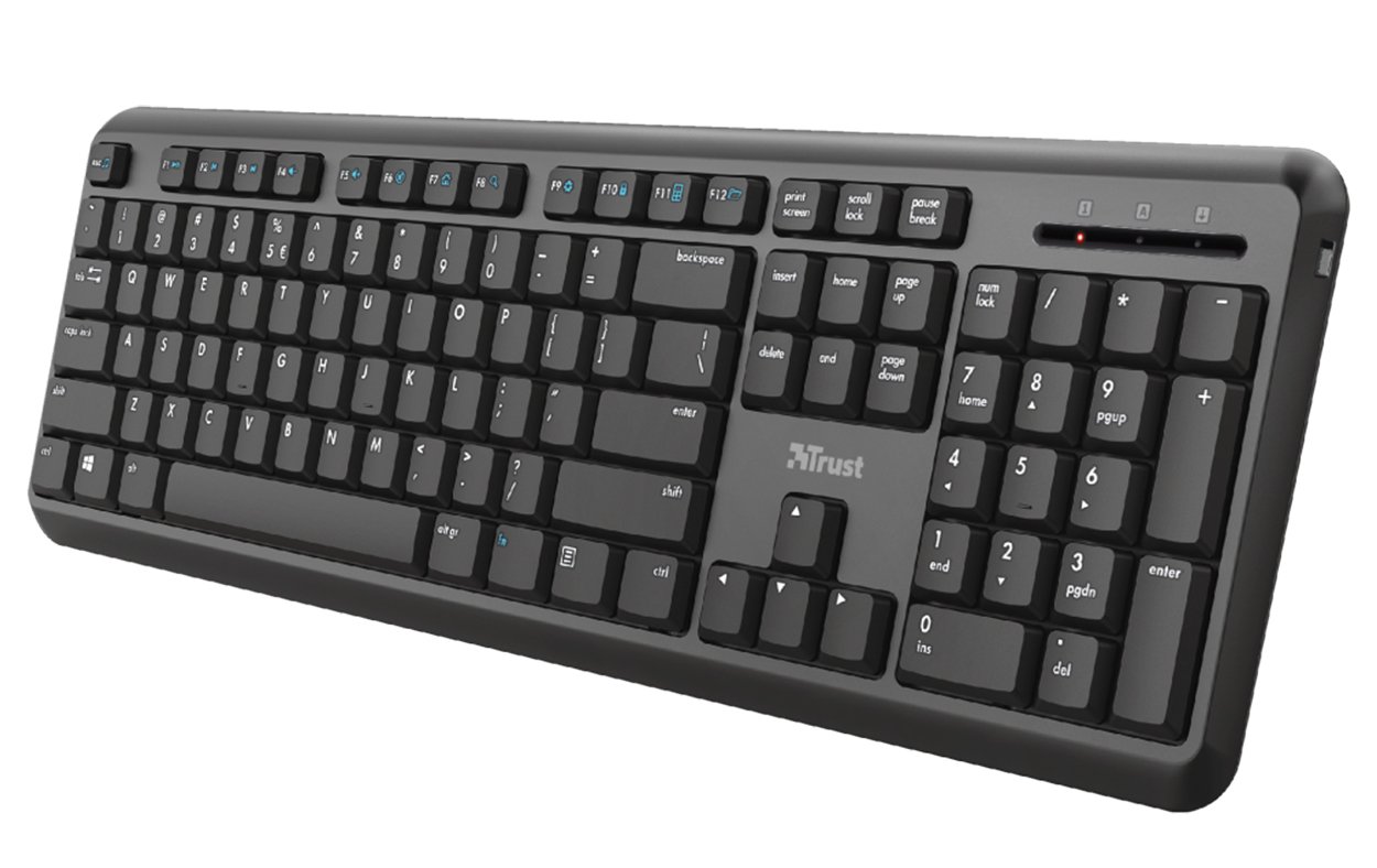 Teclado de conexión inalámbrica con un rango de alcance de hasta 10 metros y teclas silenciosas para evitar hacer ruido al escribir. Tiene un diseño de tamaño completo con teclas de perfil bajo para teclear de manera suave y cómoda , mientras que su ángulo ajustable y soportes de goma antideslizantes garantiza el nivel de comodidad durante horas. Sus 13 teclas multimedia te permiten tener un control fácil y rápido al utilizarlo. Su diseño resistente lo protege ante la caída de líquidos. Incluye receptor USB y pilas AAAA